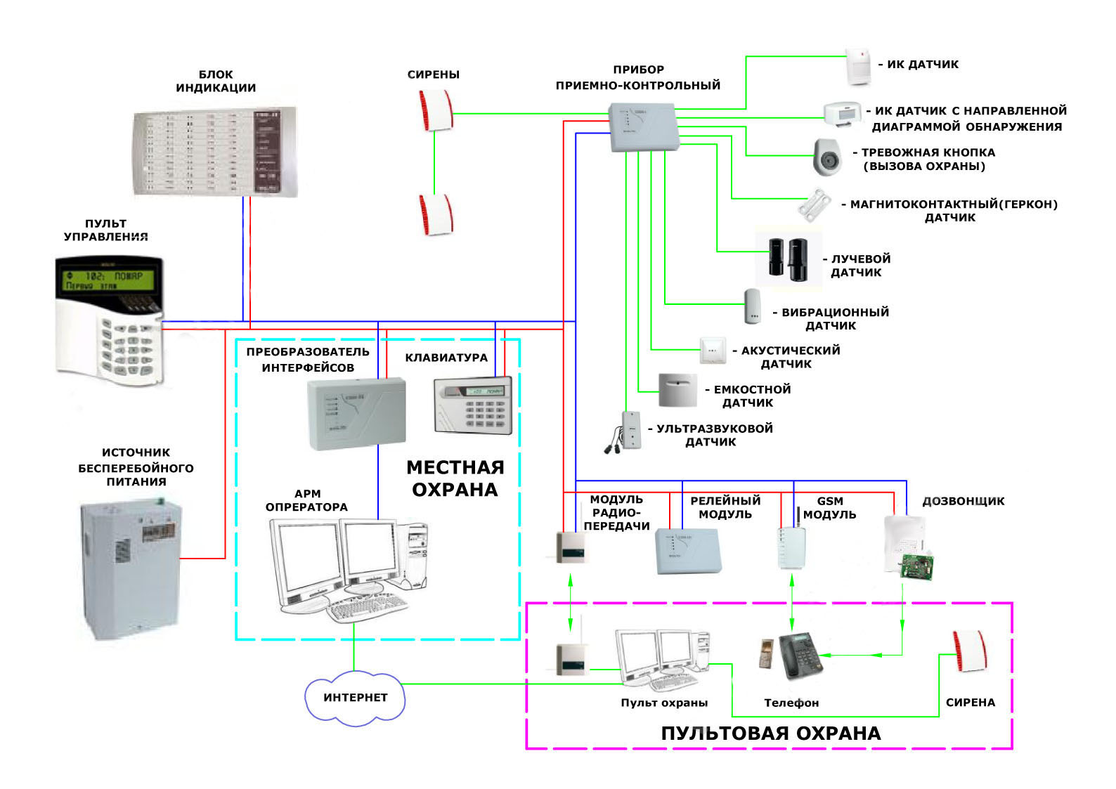 Не все собственники бизнеса готовы пойти на организацию поста охраны с круглосуточным пребыванием дежурного персонала. В этом случае предлагается выполнить вывод тревожных извещений о пожаре и/или проникновения злоумышленников в заведение на пост центрального наблюдения вневедомственной охраны или ЧОП. В этом случае заведение бизнесмена будет находиться под наблюдением все 24 часа в сутки, не отвлекая его от ведения насущных дел.